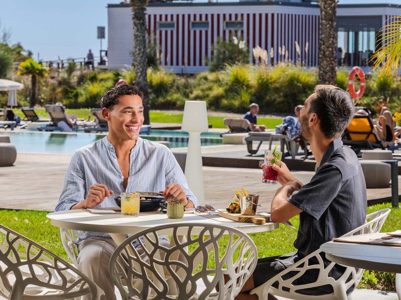 El Sunset Bar, con su ambiente relajado, es el lugar perfecto para saborear cócteles creativos, zumos naturales y deliciosos aperitivos mientras se relaja junto a las piscinas. Ambos espacios ofrecen un ambiente vibrante y son ideales para eventos y celebraciones especiales.