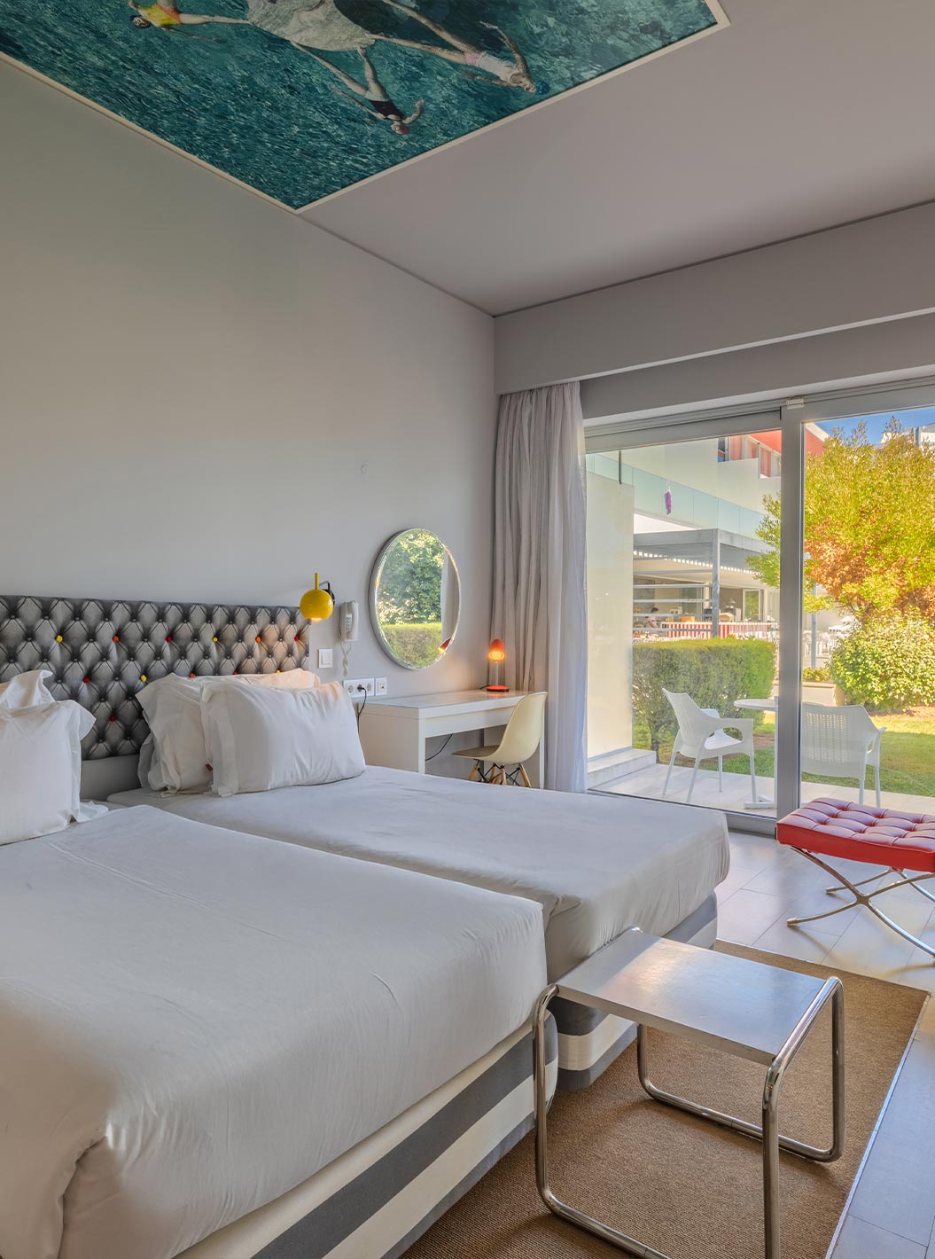 El Deluxe - Exclusivo Website del Pestana Alvor South Beach tiene cama matrimonial con terraza o balcón con vista al jardín