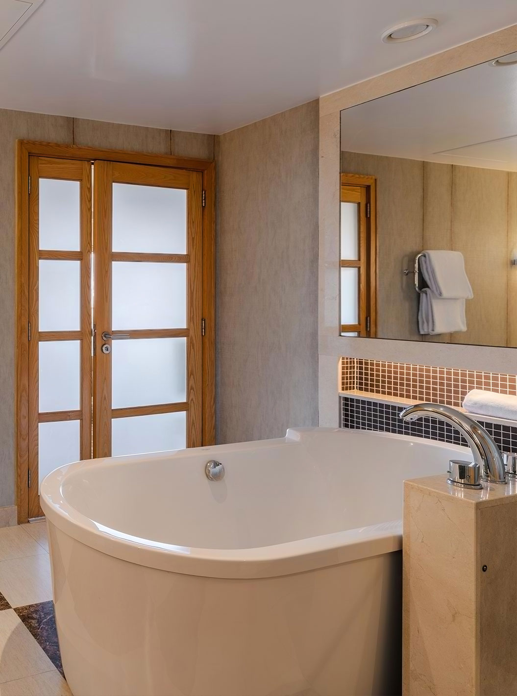 Las zonas de relajación le llamarán la atención, al igual que el gimnasio, la sala de masajes y la piscina cubierta, con sus decenas de tumbonas y vistas frontales al mar.