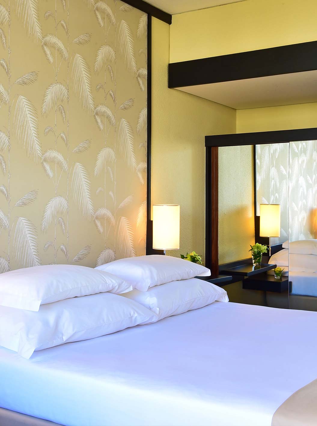 El Clásico Vista Tierra del Pestana Casino Park tiene armario forrado con espejos al lado de la cama de matrimonio