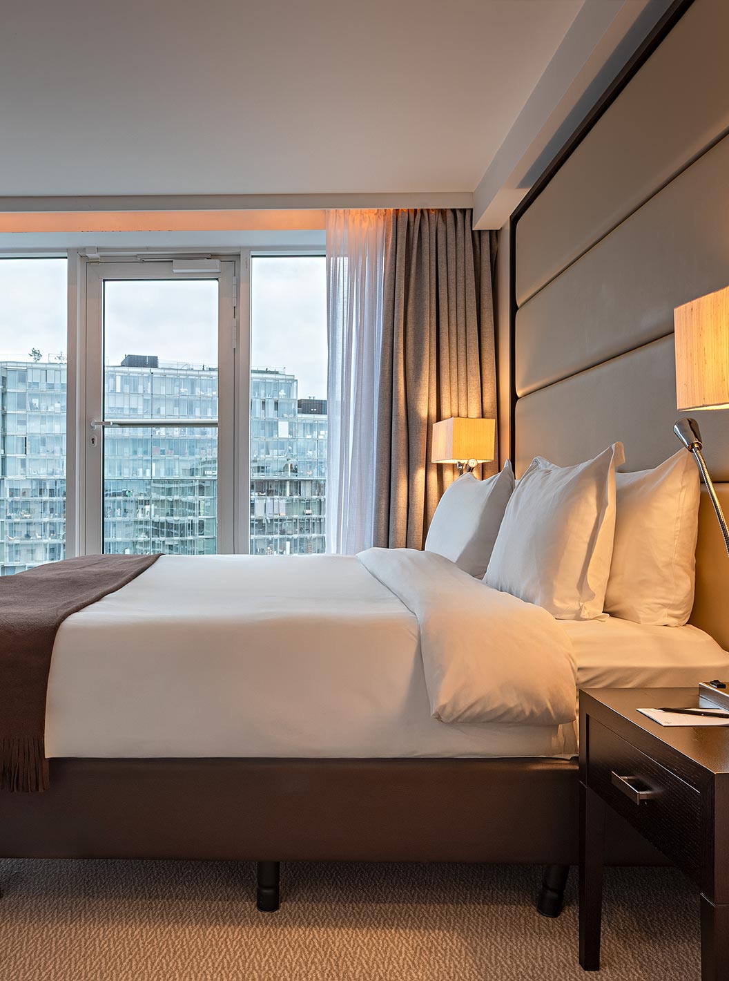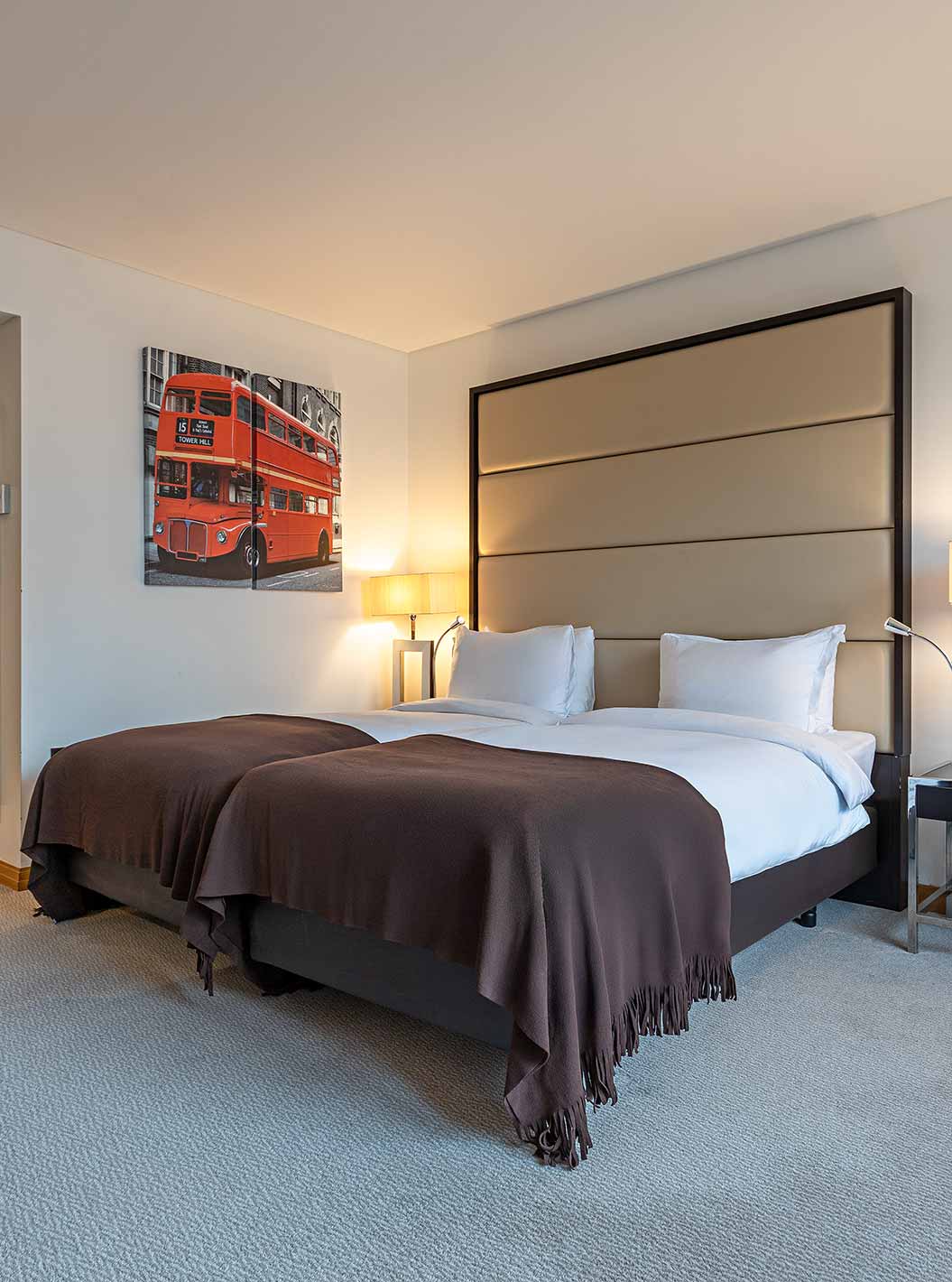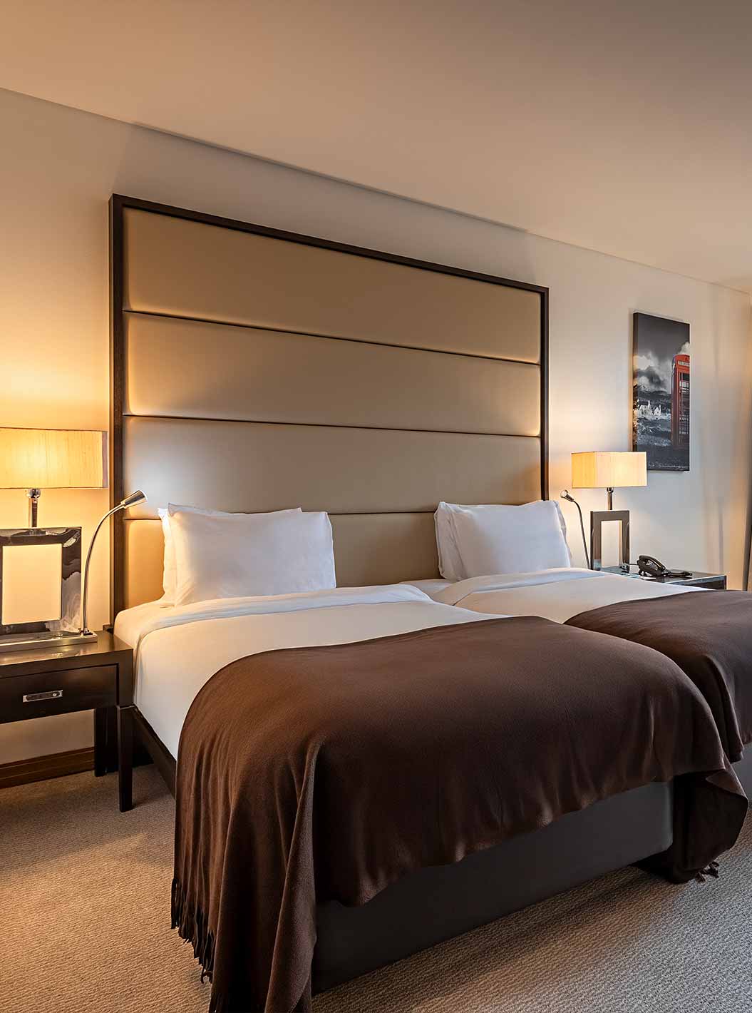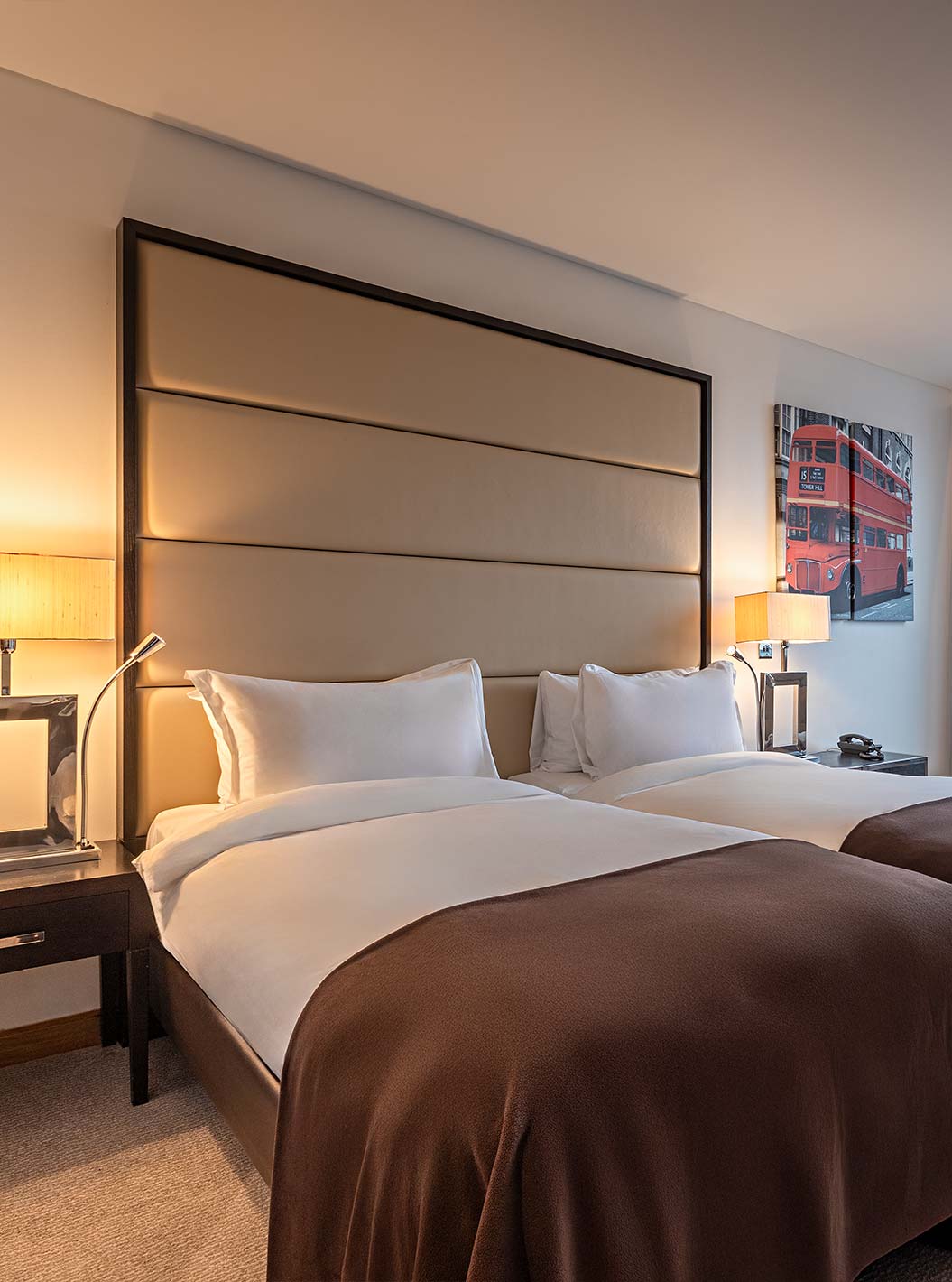 El hotel dispone de 217 habitaciones amplias y modernas, incluidas suites de uno y dos dormitorios, todas equipadas con bañera y ducha independientes. La comodidad de las camas king size o twin deluxe es una característica distintiva que conquista tanto a los viajeros en busca de ocio como a los equipos de fútbol nacionales e internacionales que ya han elegido el Pestana como su hogar en Londres.