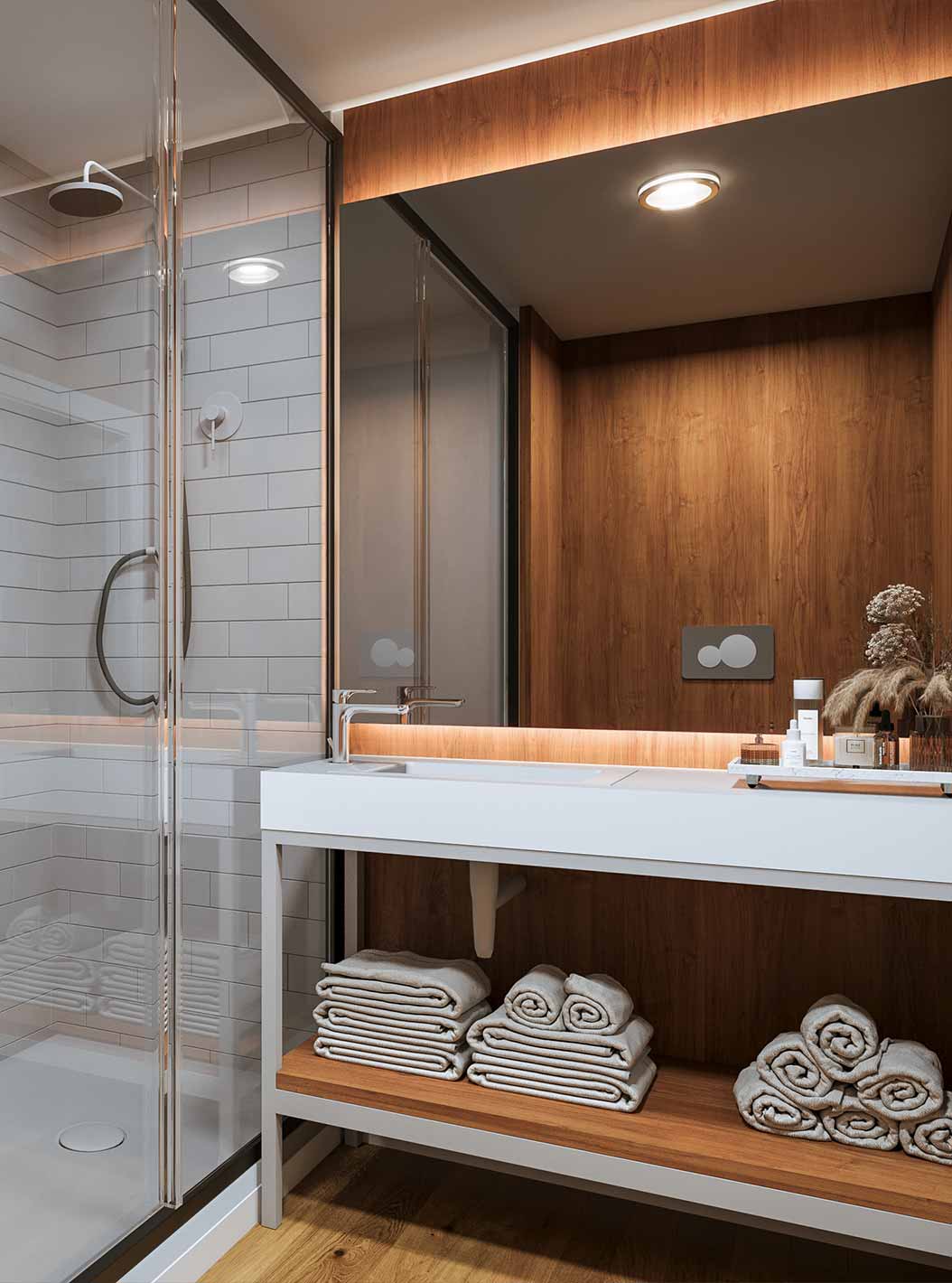Las villas de madera están diseñadas para integrarse armoniosamente con el paisaje, recurriendo a soluciones constructivas y energéticas que minimizan el impacto ambiental. La gestión eficiente de los recursos, el uso de materiales naturales y la implementación de prácticas ecológicas en todas las áreas del complejo reflejan el compromiso de ofrecer una experiencia de vacaciones responsable, en la que el confort y el respeto por el medio ambiente van de la mano.