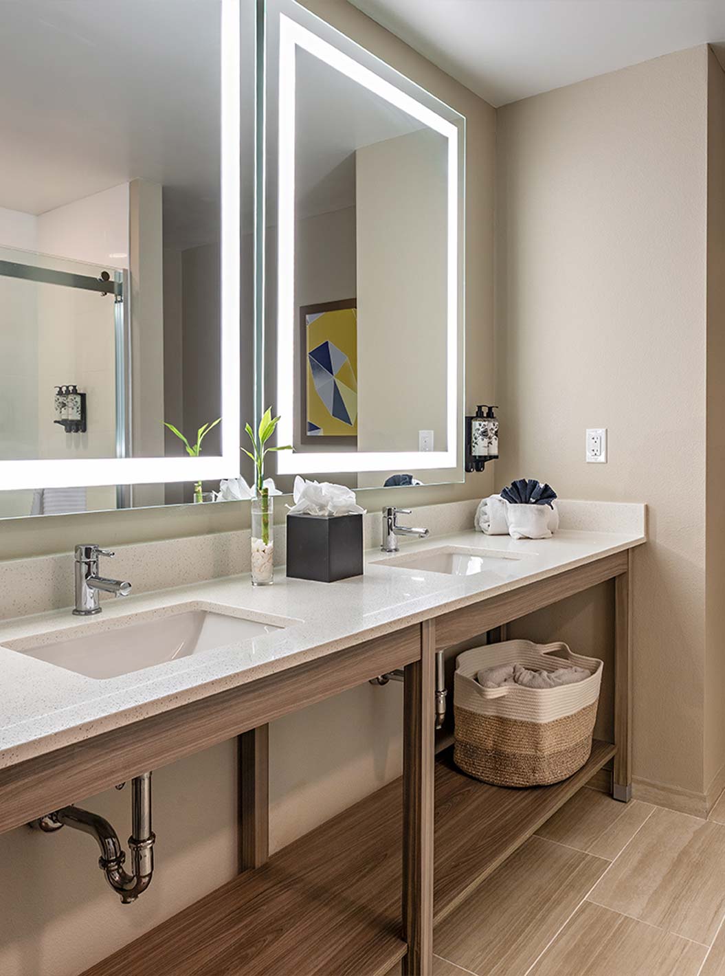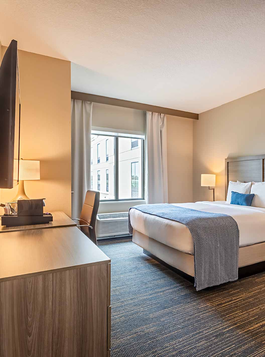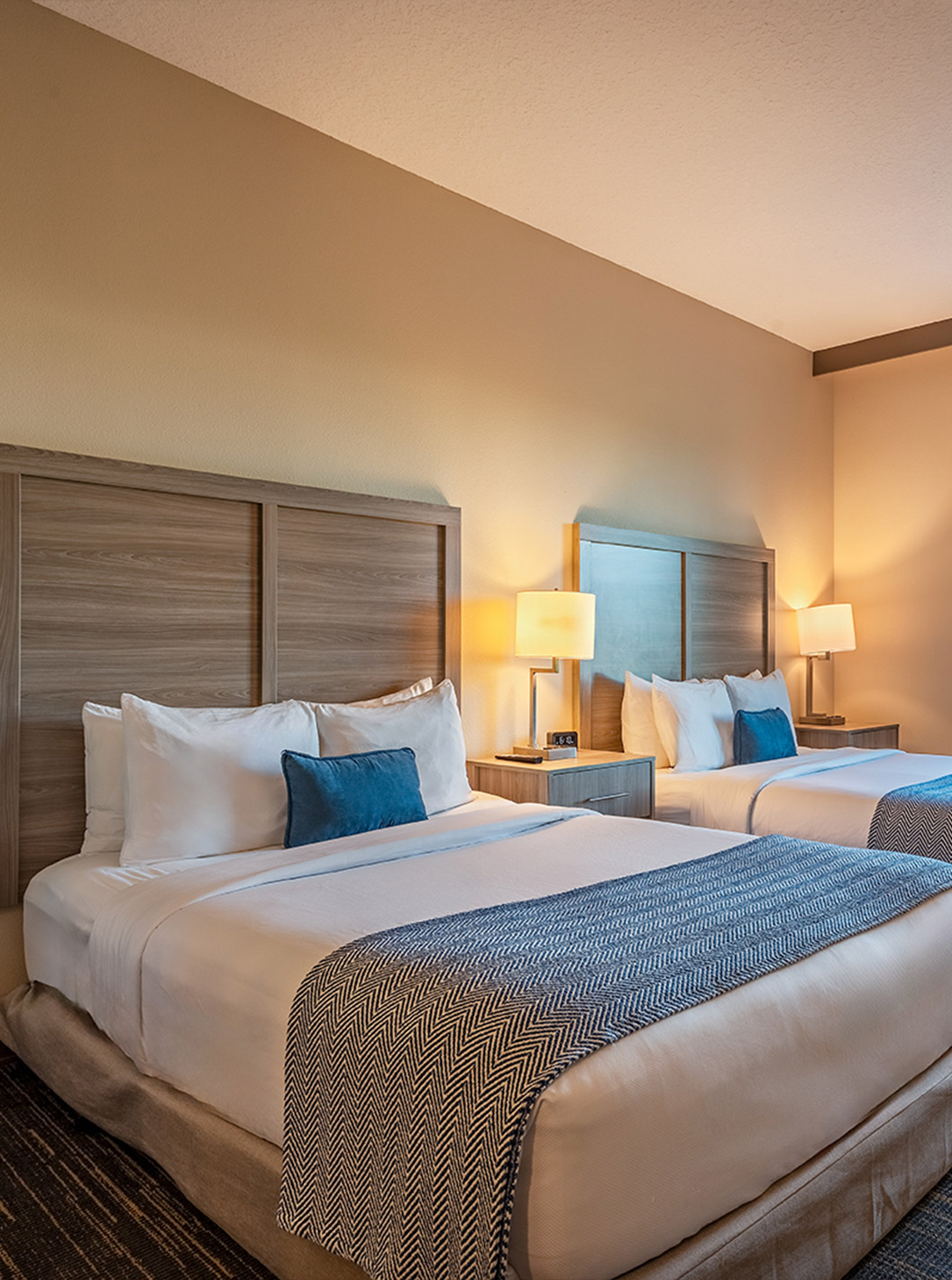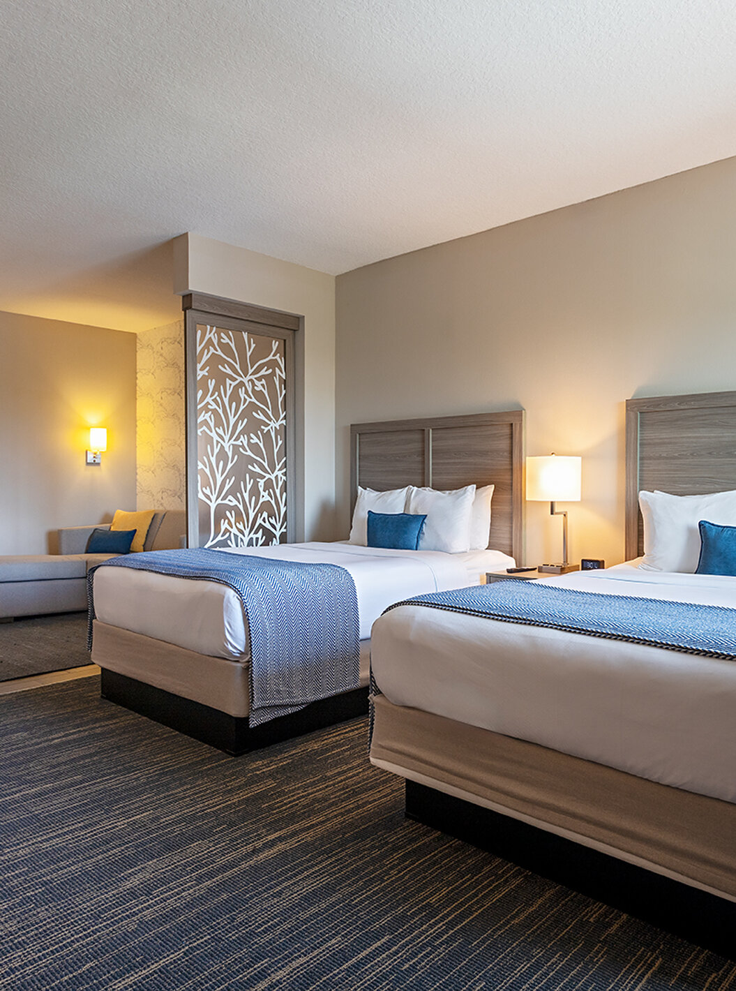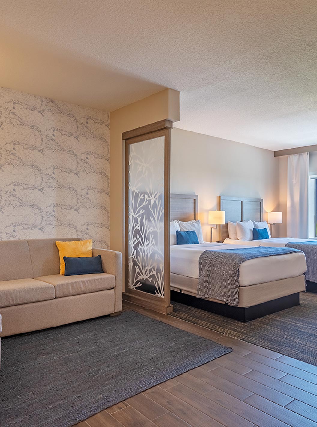 Descubra los espacios amplios y luminosos, incluyendo salas de estar, dormitorio, almacenamiento y escritorio. Suites equipadas con dos camas queen size o una cómoda cama de matrimonio king size.