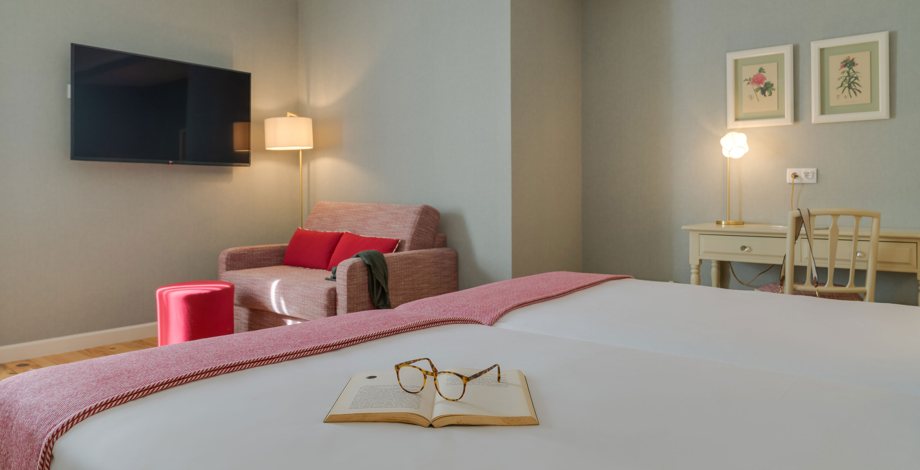 La Junior Suite del Pestana Quinta Perestrello tiene dos camas individuales, mesita de noche y un escritorio