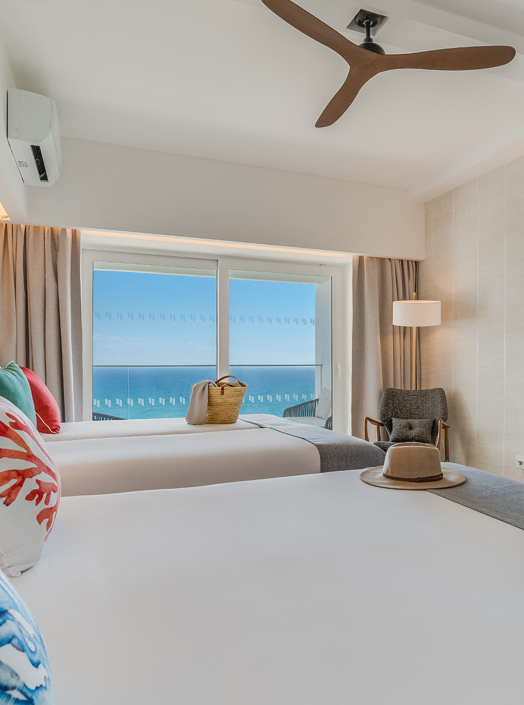 O Quarto Familiar Superior Vista Mar do Pestana Blue Alvor Beach tem duas camas de casal, ar condicionado e varanda com vista
