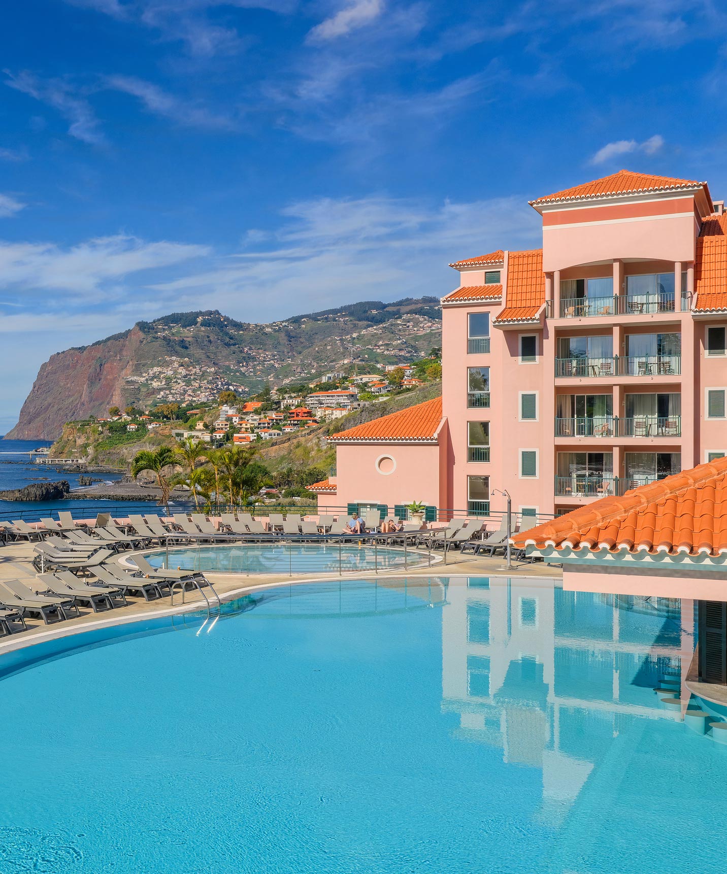 O Pestana Royal All Inclusive oferece duas piscinas exteriores, ideais para quem procura relaxar e desfrutar do sol madeirense.