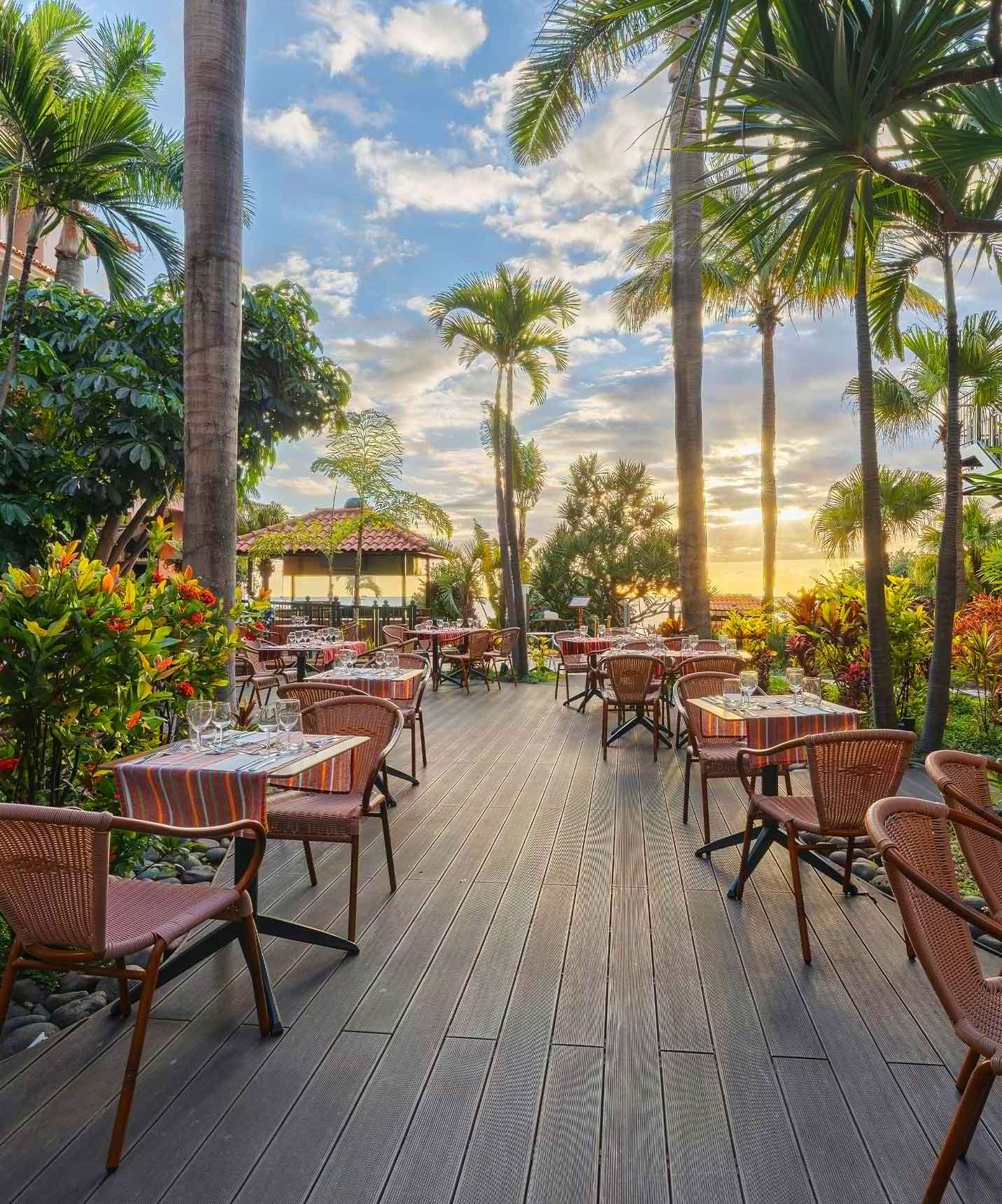 Os nossos restaurantes, em ambientes elegantes, românticos e acolhedores, dispõem de espaços exteriores que oferecem um cenário único sobre os nossos jardins, e onde poderá usufruir do seu pequeno-almoço, almoço e jantar.
