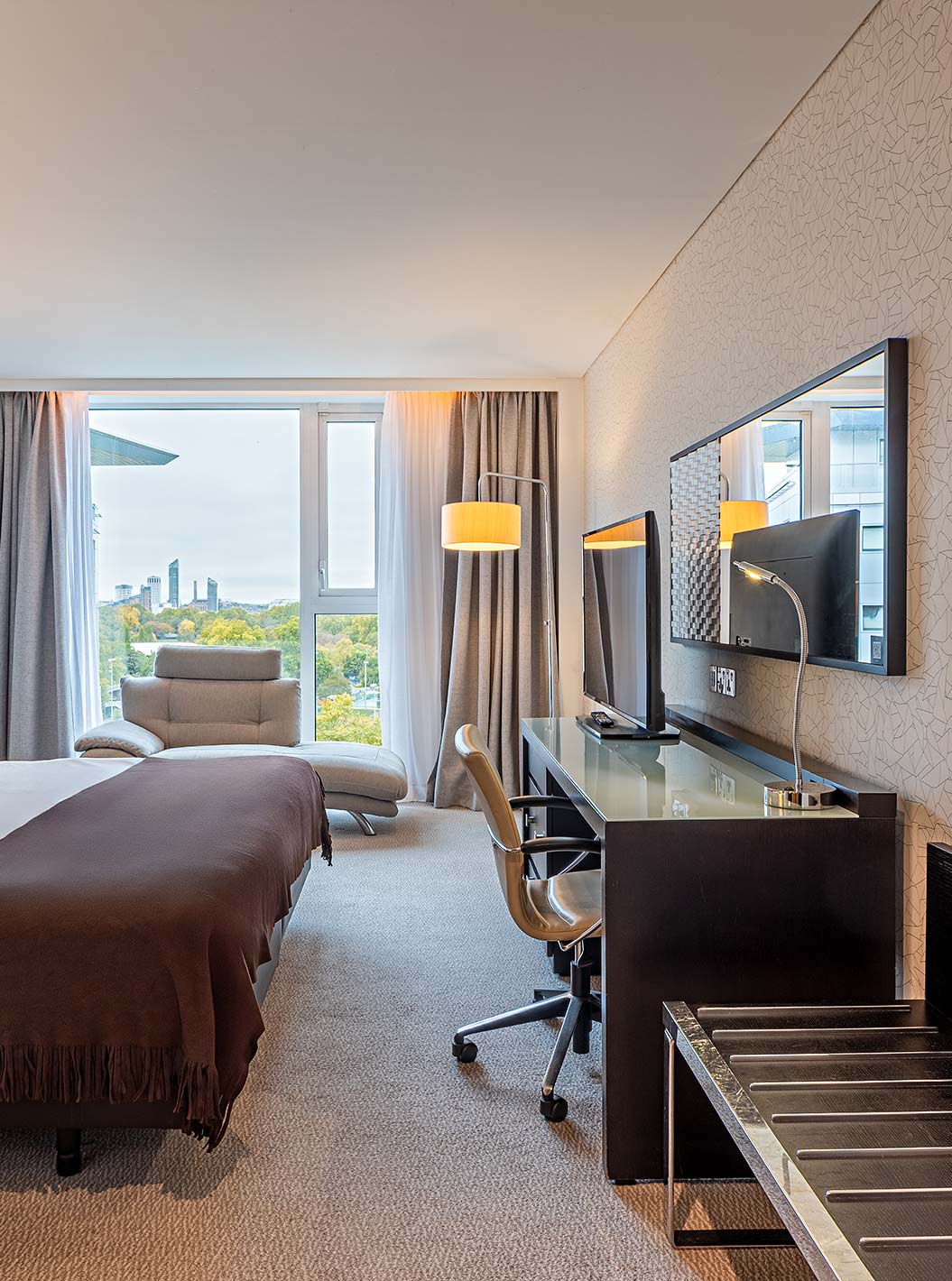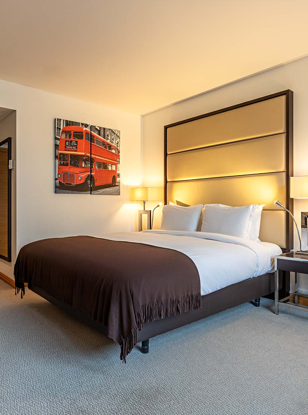 Het hotel biedt 217 ruime, moderne kamers, waaronder suites met één of twee slaapkamers, allemaal uitgerust met zowel een bad als een aparte douche. Het comfort van de kingsize bedden en Twin Deluxe-bedden is een kenmerk geworden en verdient lof van vakantiegangers en van nationale en internationale voetbalteams die van Pestana hun thuis hebben gemaakt in Londen.