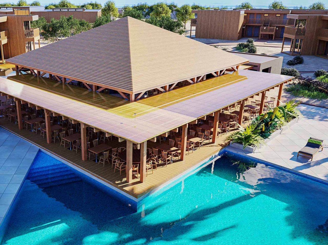 De houten villa's zijn ontworpen voor harmonieuze integratie in het landschap, met behulp van constructieve en energieoplossingen die de impact op het milieu minimaliseren. Het efficiënte beheer van hulpbronnen, het gebruik van natuurlijke materialen en de implementatie van milieuvriendelijke praktijken in alle delen van het resort weerspiegelen het streven om een verantwoorde vakantie-ervaring te bieden, waarbij comfort en respect voor het milieu hand in hand gaan.